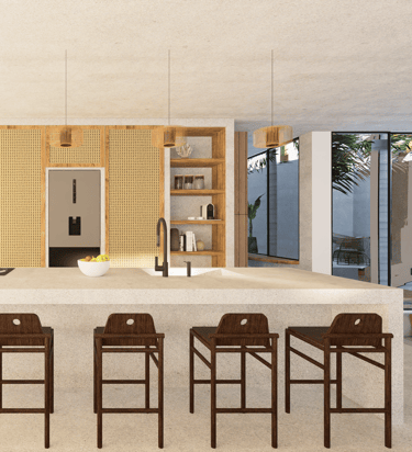 Implantée en plein cœur des rizières luxuriantes de Canggu, cette maison a été pensée comme un sanctuaire de calme et d’harmonie, en lien direct avec la nature balinaise. Son architecture contemporaine s’ancre dans le paysage grâce à une volumétrie simple, des lignes horizontales épurées et l’usage de matériaux bruts et locaux, tels que le teck, la pierre volcanique ou le bambou.